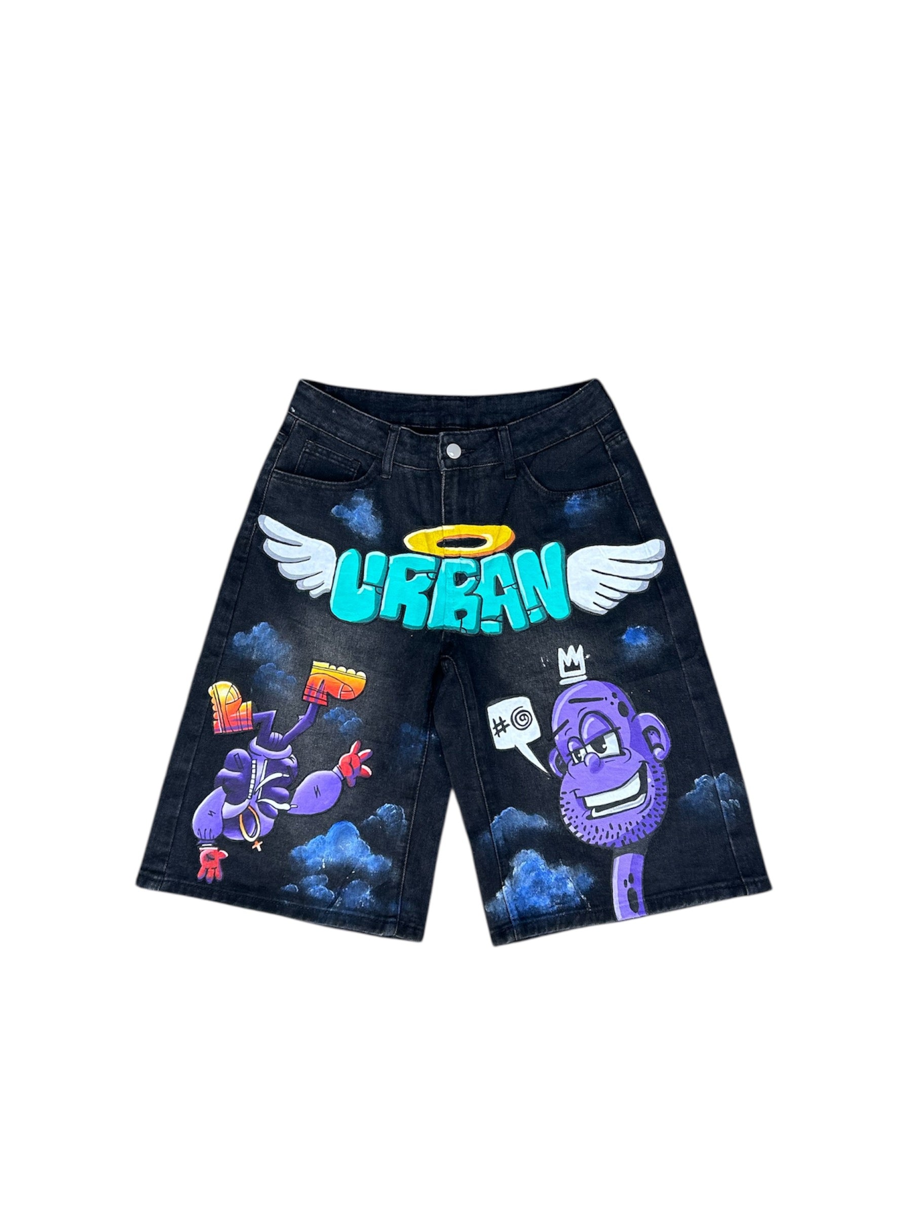 Painted jeans short by urBan expertly crafted with hand-painted old-school cartoon characters. this Jean short is a unique and stylish addition to any wardrobe. Made with high-quality materials, it offers both comfort and durability. Express your individuality with this one-of-a-kind fashion piece.jeans short by urBan expertly crafted with hand-painted old-school cartoon characters. this Jean short is a unique and stylish addition to any wardrobe. Made with high-quality materials, it offers both comfort and durability. Express your individuality with this one-of-a-kind fashion piece
